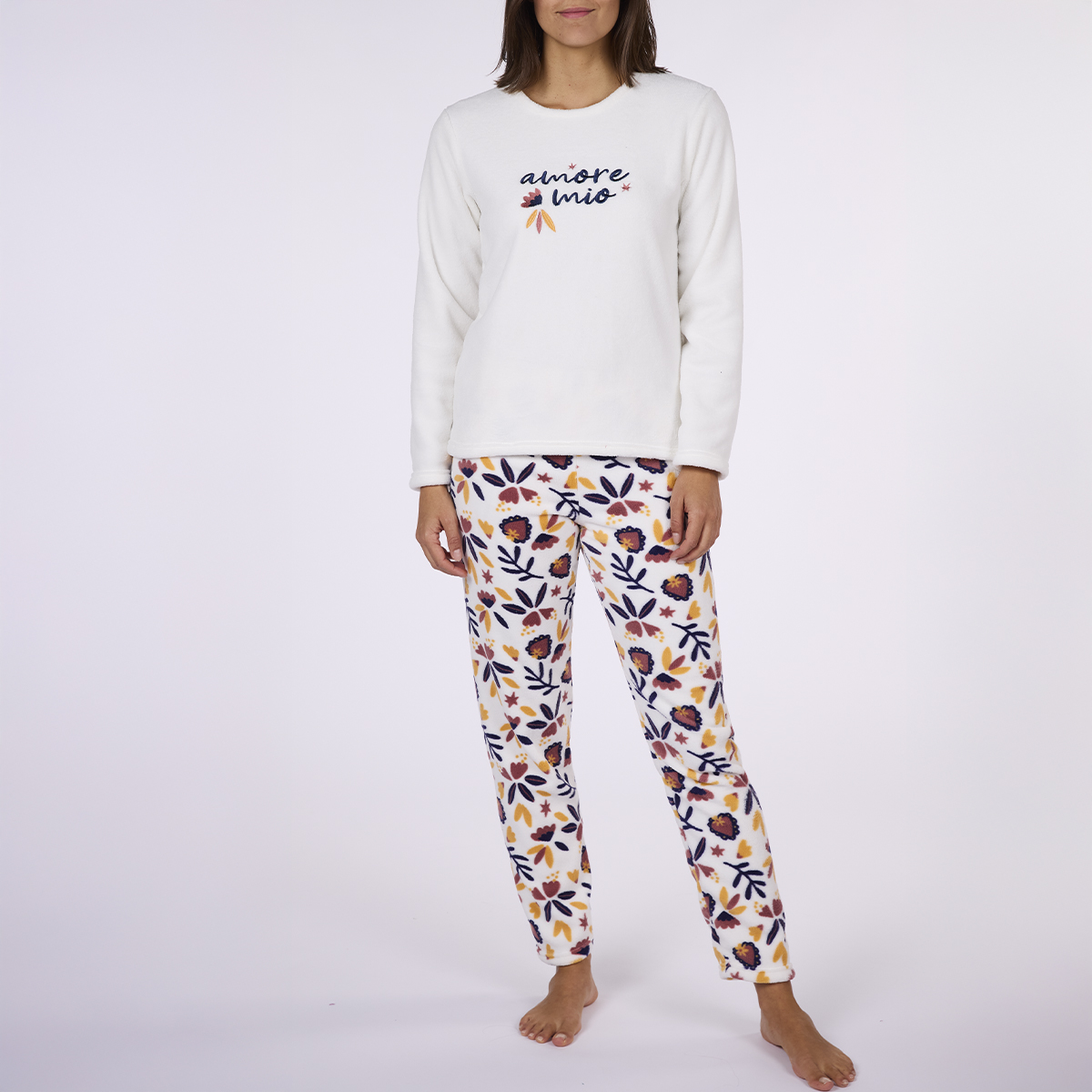Πυζάμα fleece blanc Melissa Brown 100% polyester