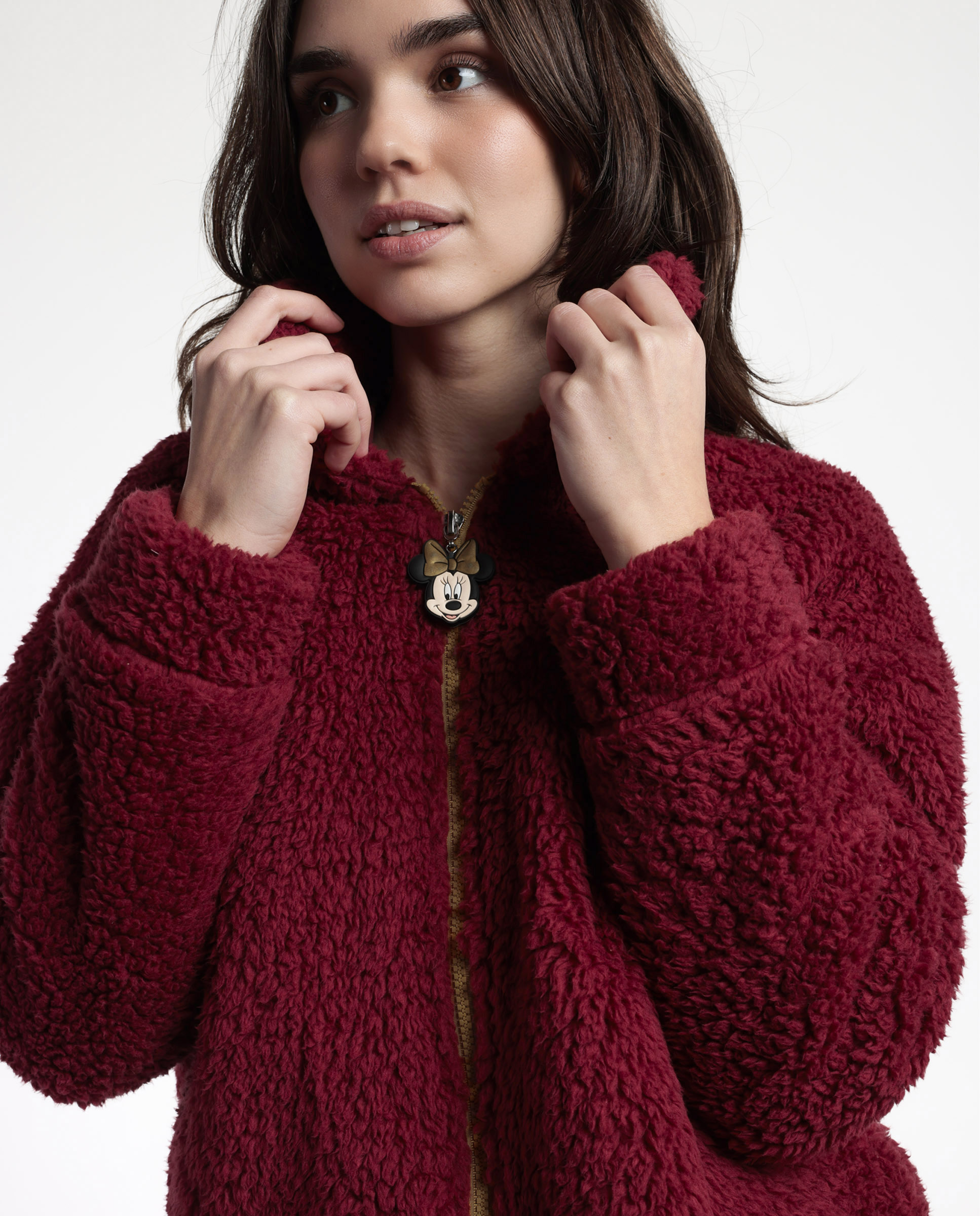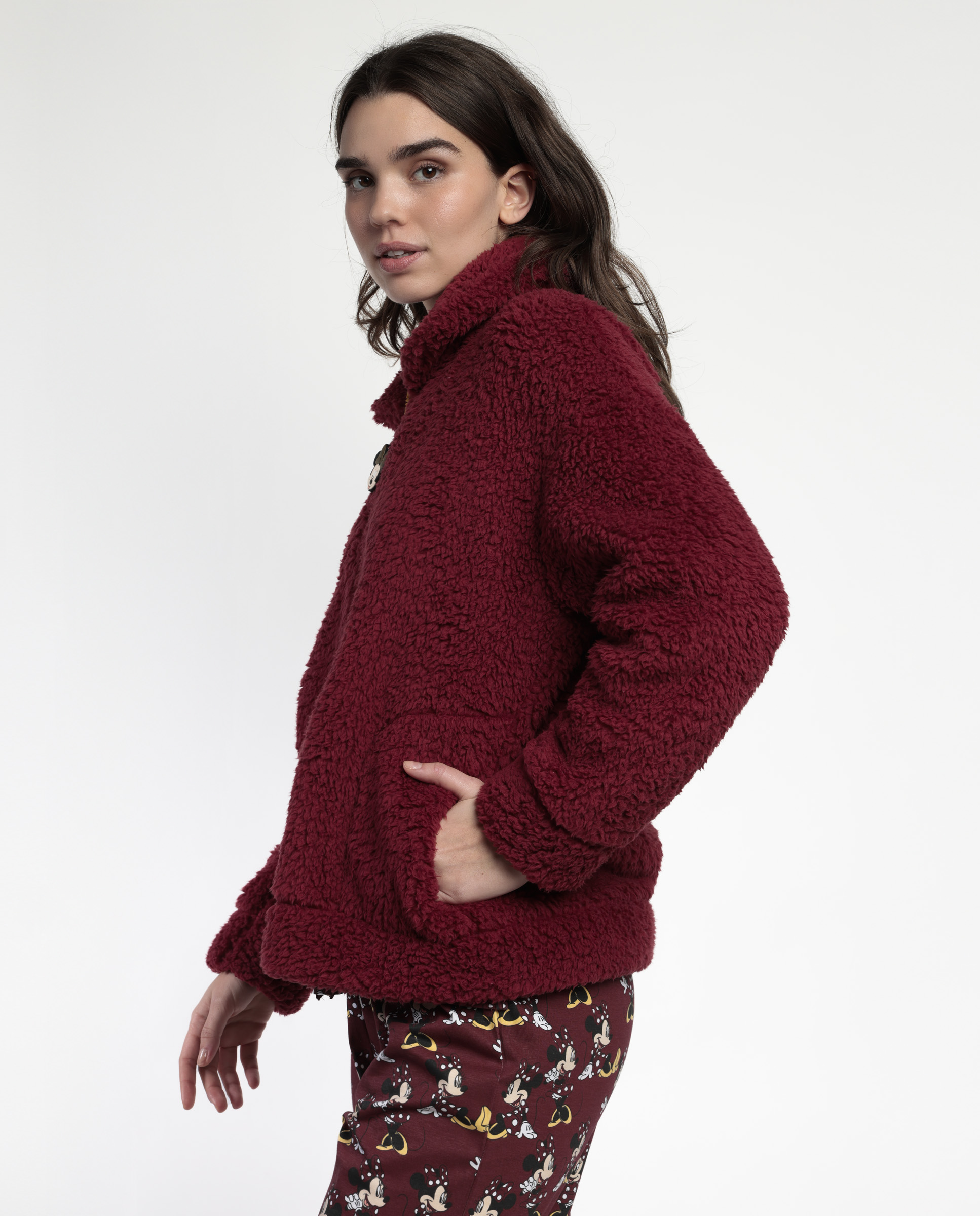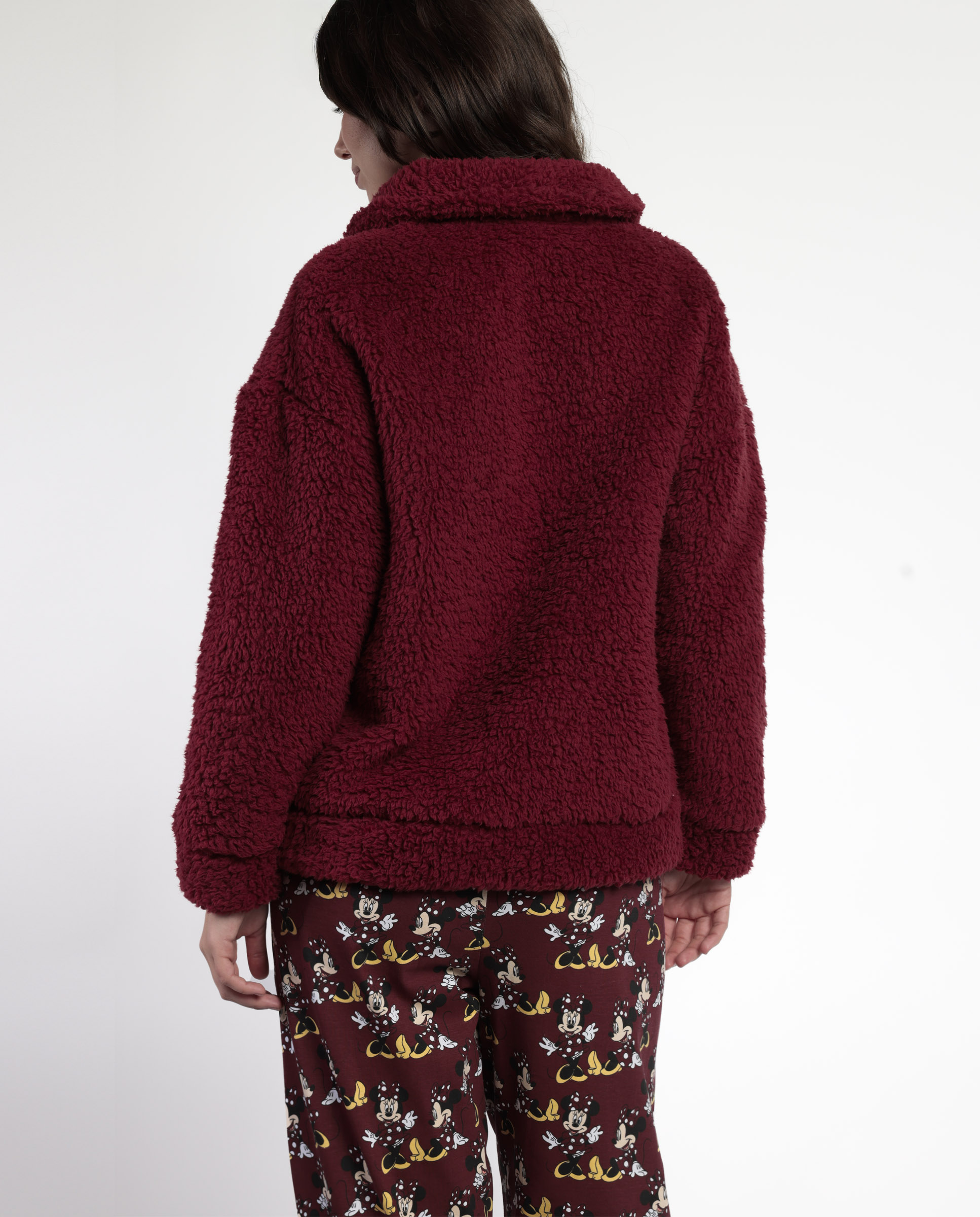 Ρόμπα ζακέτα fleece bordeaux Minnie Mouse Disney. Με φερμουάρ διακοσμημένο με Minnie Mouse, τσέπες και γιακά