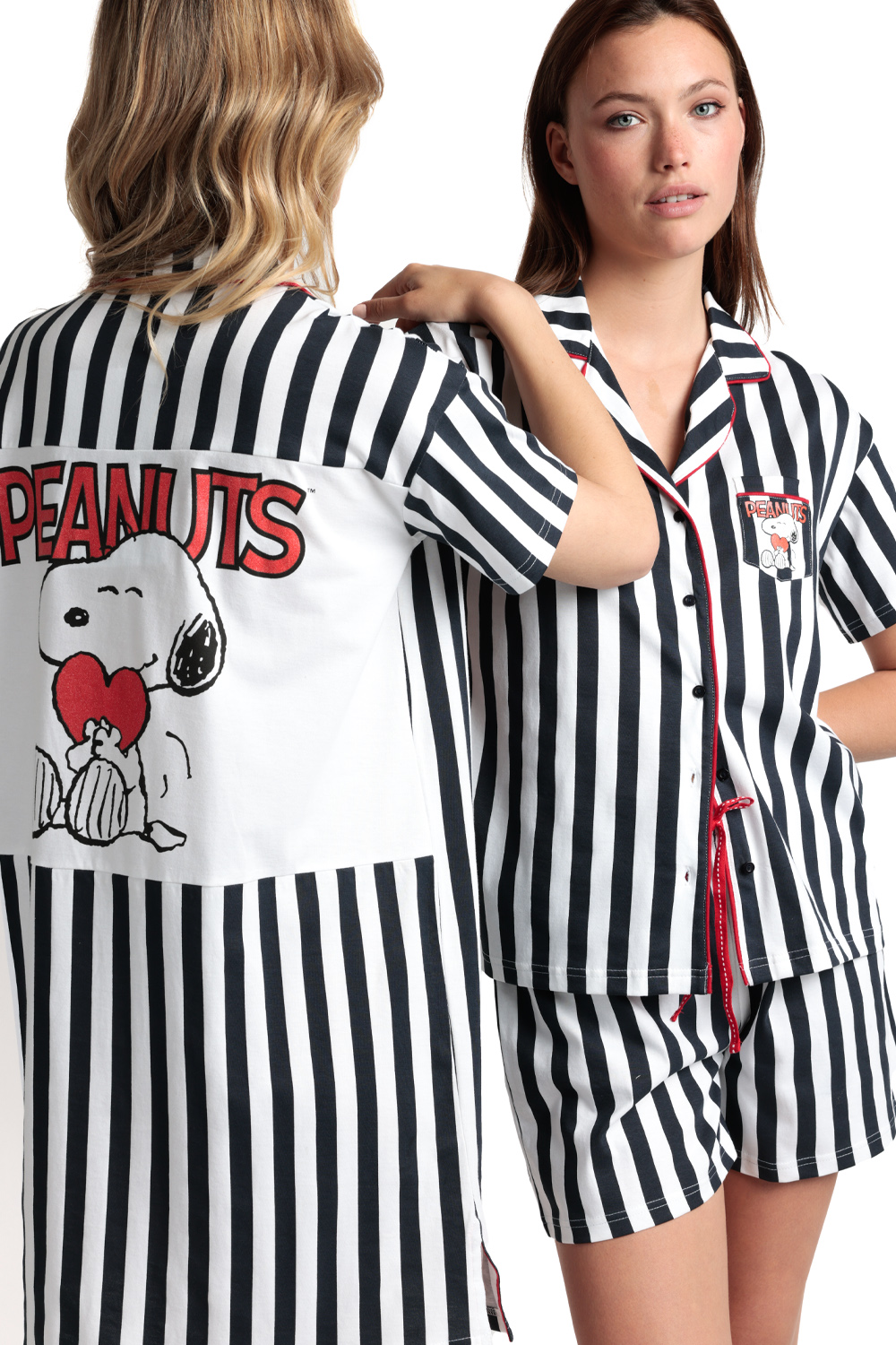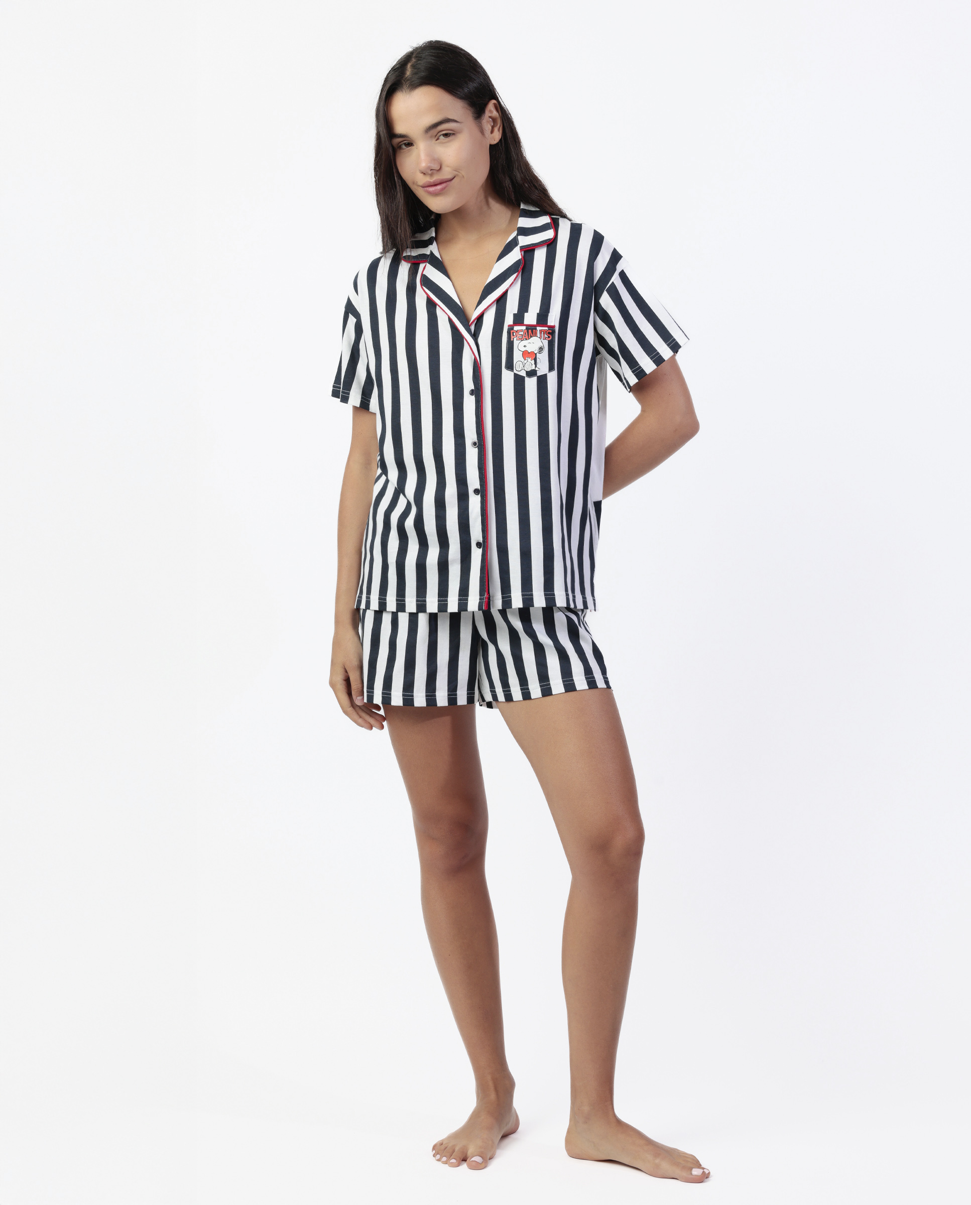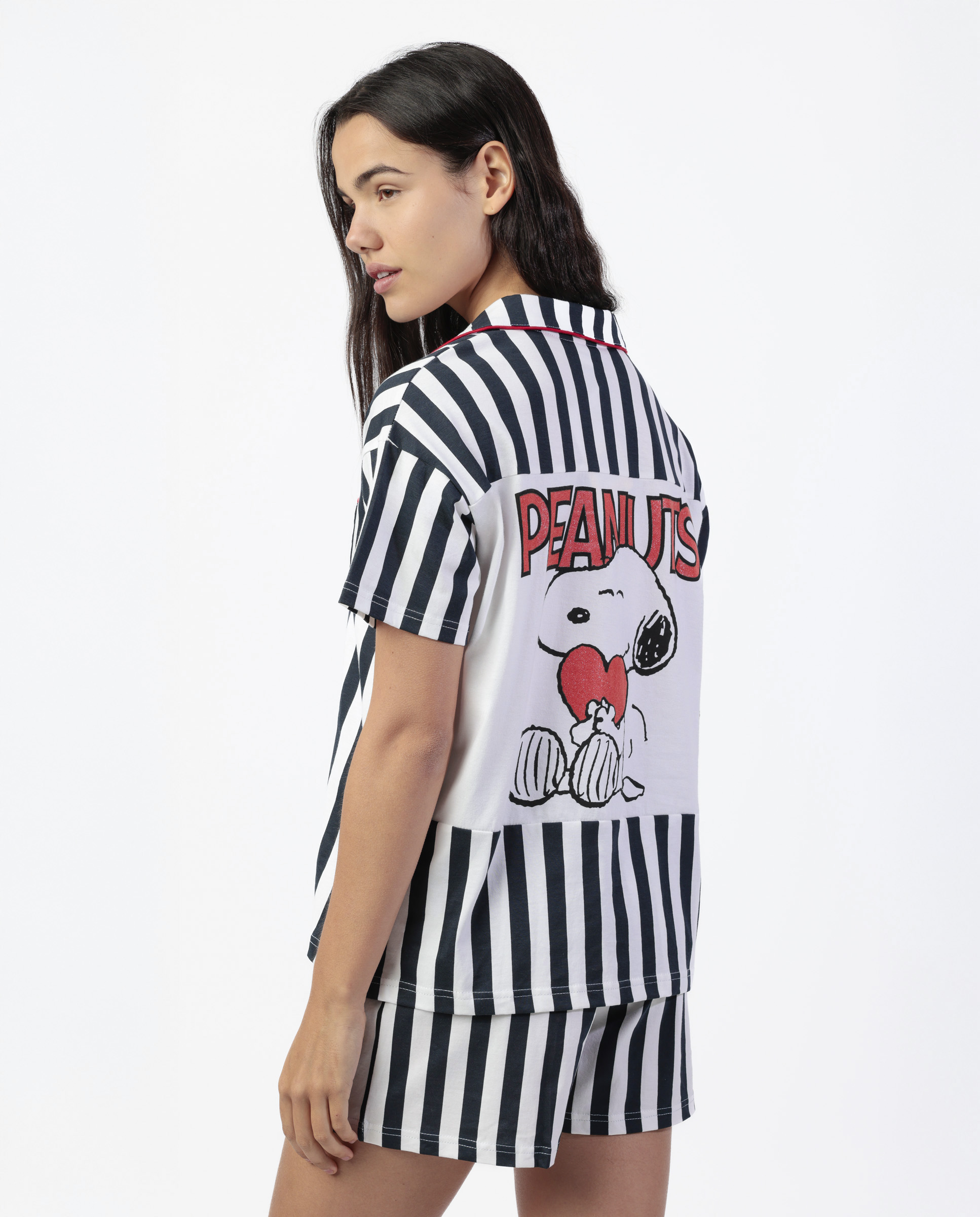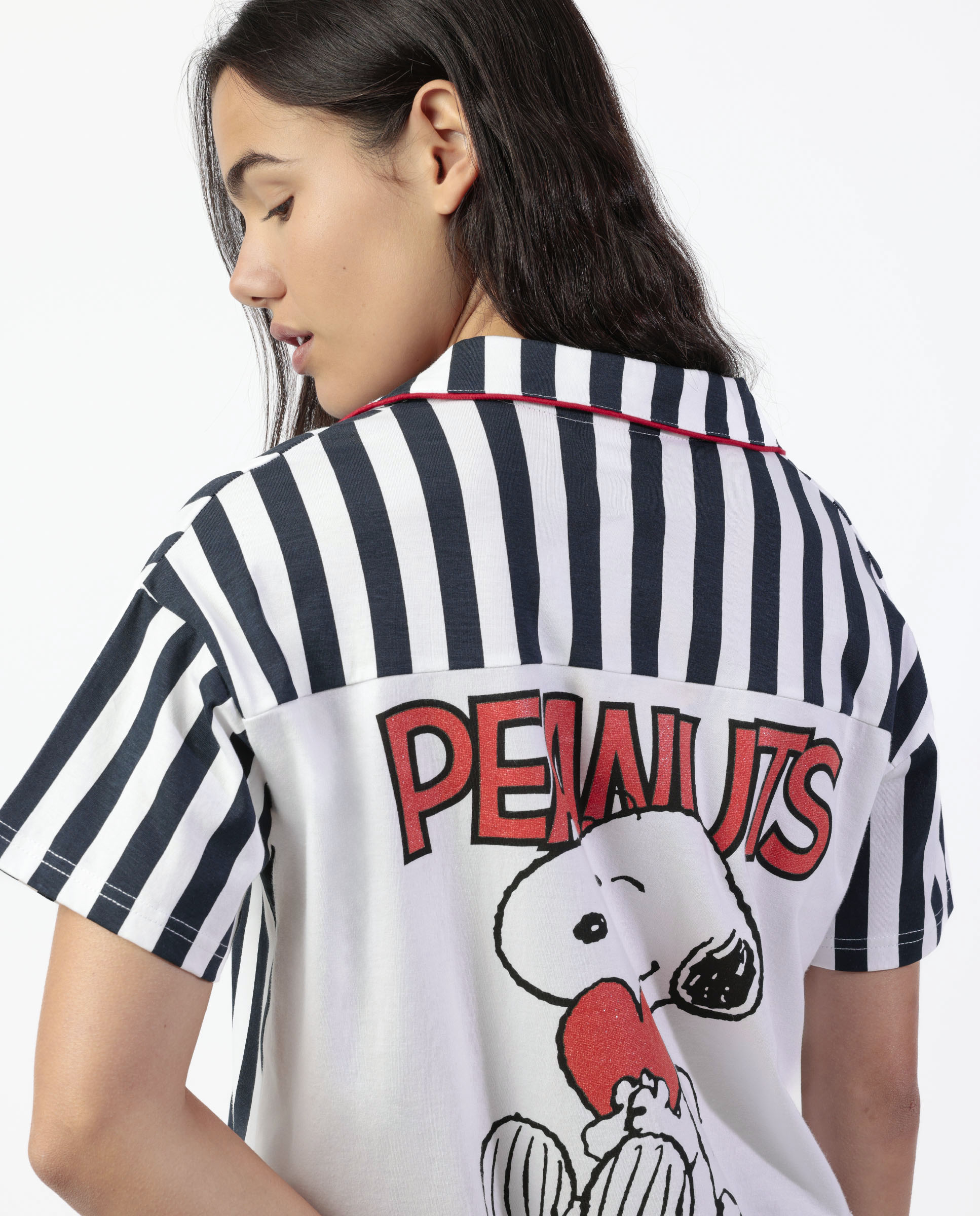Top με κοντό μανίκι, γιακά και κουμπιά. Τσεπάκι στο στήθος. Στάμπα Snoopy Peanuts στην πλάτη.