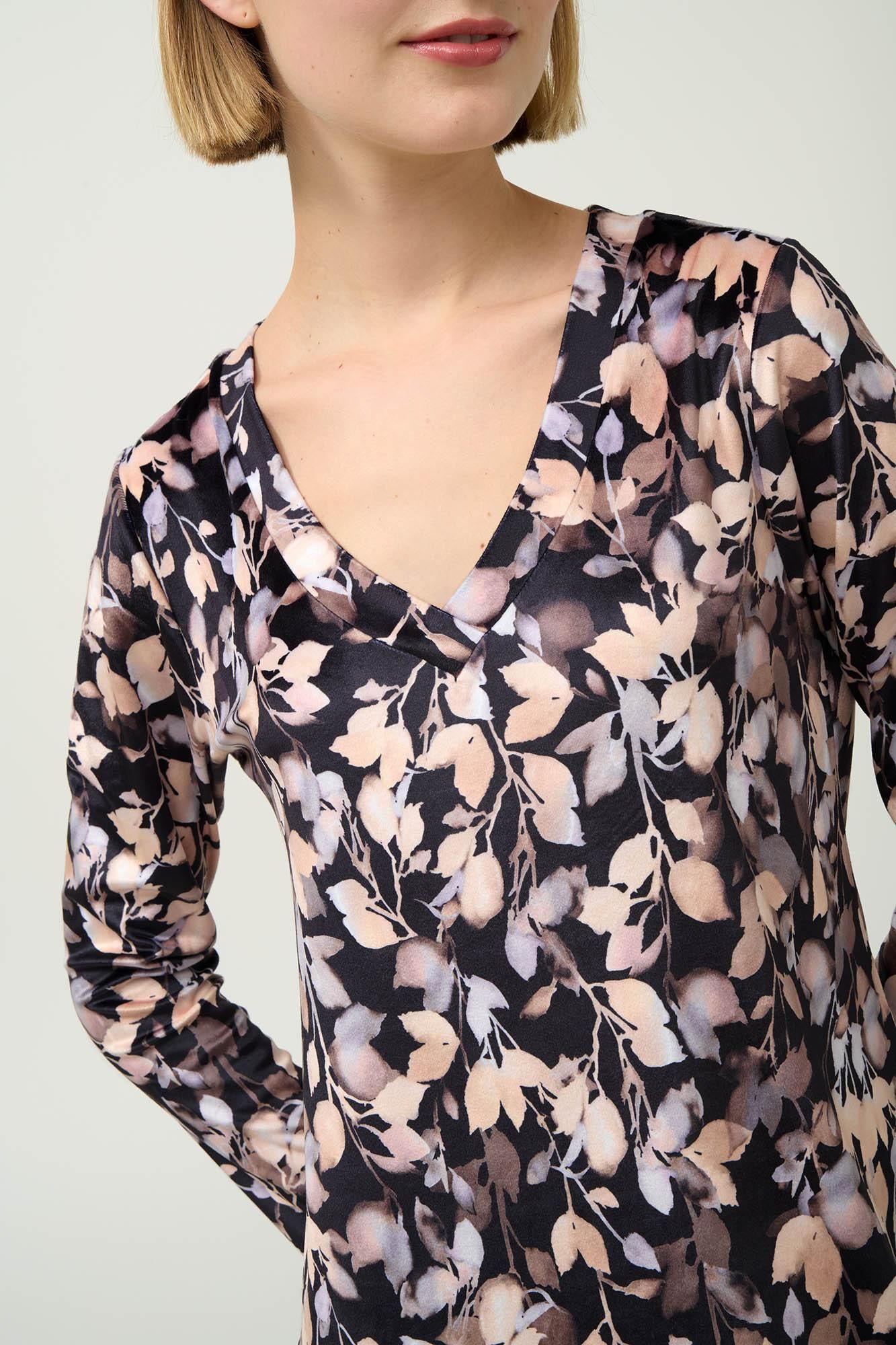 Απολαύστε την απόλυτη άνεση και στυλ που μπορεί να σας προσφέρει αυτό το φλοράλ φόρεμα από μαλακό ελαστικό βελούδο. Η λαιμόκοψη V προσθέτει μια νότα κομψότητας ενώ η χαλαρή γραμμή του εξασφαλίζει ελευθερία κινήσεων και άνετη εφαρμογή. Ιδανικό για ξεκούραση στο σπίτι ή χαλαρές εξορμήσεις, αυτό το φόρεμα συνδυάζει πολυτελή απαλότητα και άνεση με ένα ονειρικό, ακουαρέλα φλοράλ μοτίβο