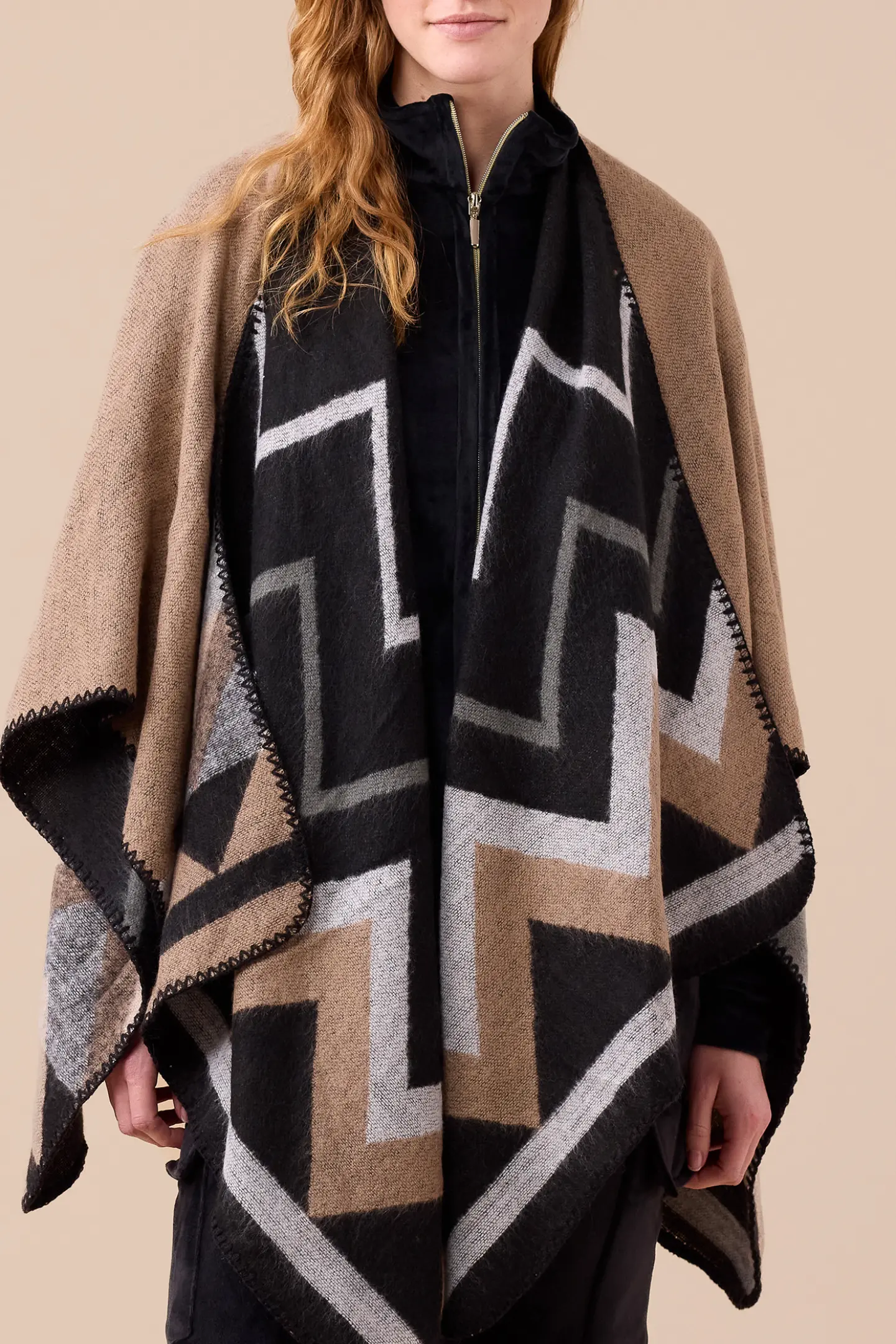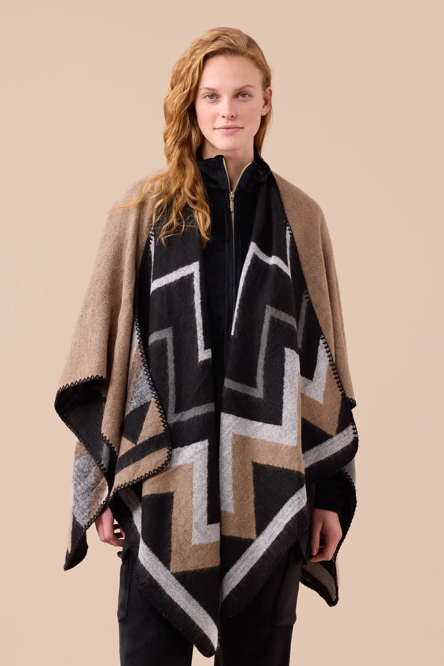 Απαλή κάπα ιδανική για τις πιο κρύες ημέρες. Με κρόσσια στο τελείωμα σε ουδέτερες αποχρώσεις μαύρου, μπεζ, κρεμ και γκρι, συνδυάζει την άνεση και την πρακτικότητα με ένα κομψό, διαχρονικό σχέδιο. Ο σχεδιασμός σε στυλ σάλι, την καθιστά πρακτική και τυλιγμένη, ιδανική για να την φορέσετε πάνω από παλτό, από πουλόβερ ή την πυζάμα σας για να αντιμετωπίσετε την κρύα εποχή με μια πινελιά boho chic.