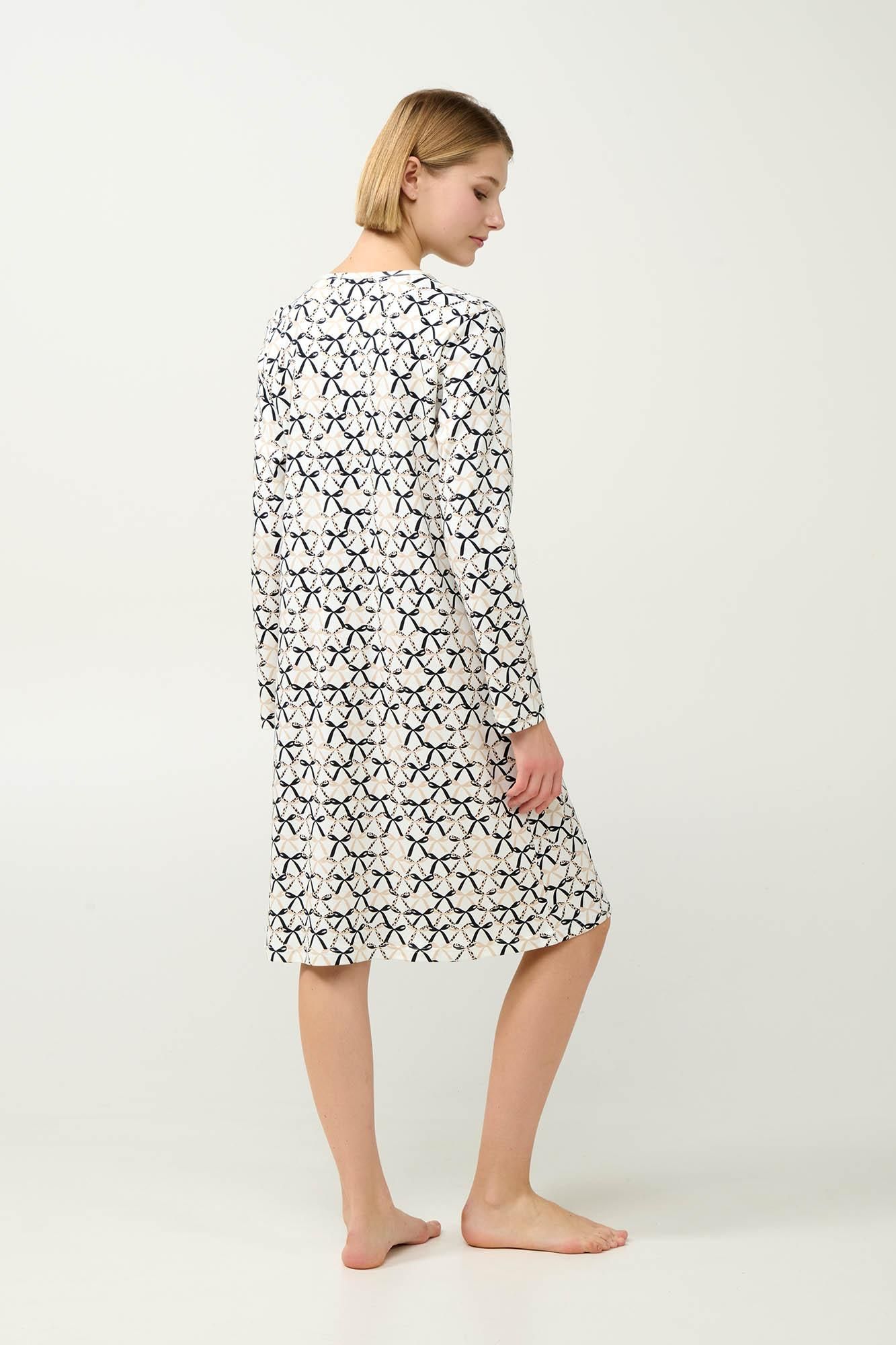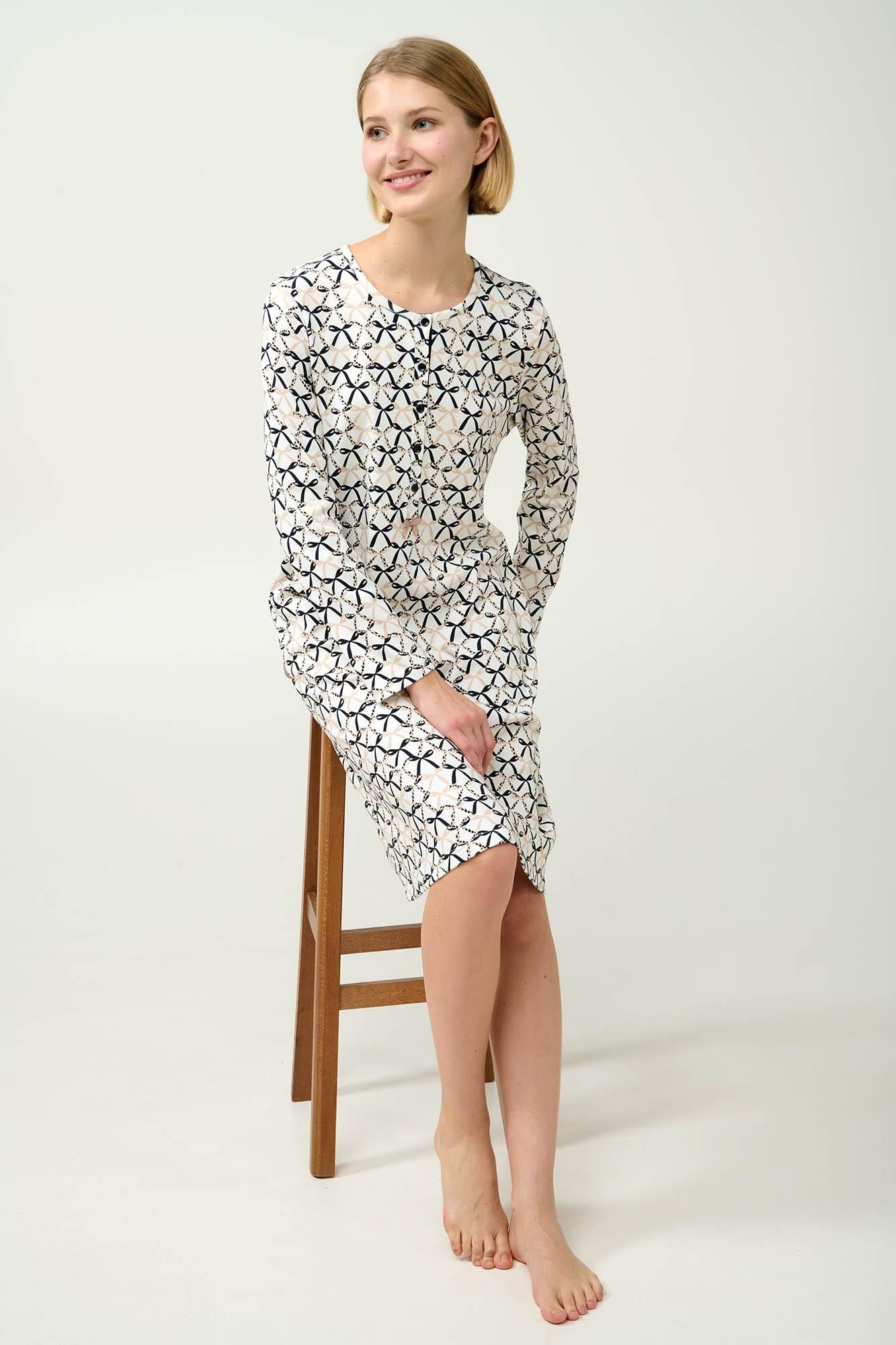 Νυχτικό bows Pillow talk by Vamp. Ανανεώστε τη χειμερινή σας γκαρνταρόμπα με αυτό το νυχτικό, φτιαγμένο από 100% βαμβακερό interlock για απαλή υφή και εξαιρετική διαπνοή. Το κομψό μοτίβο με φιόγκους προσθέτει μια παιχνιδιάρικη αλλά και θηλυκή πινελιά, ενώ η πατιλέτα εξασφαλίζει άνεση και κομψότητα. Με μακριά μανίκια και χαλαρή γραμμή, είναι ιδανικό για ήρεμα βράδια στο σπίτι και στιγμές απόλυτης χαλάρωσης.