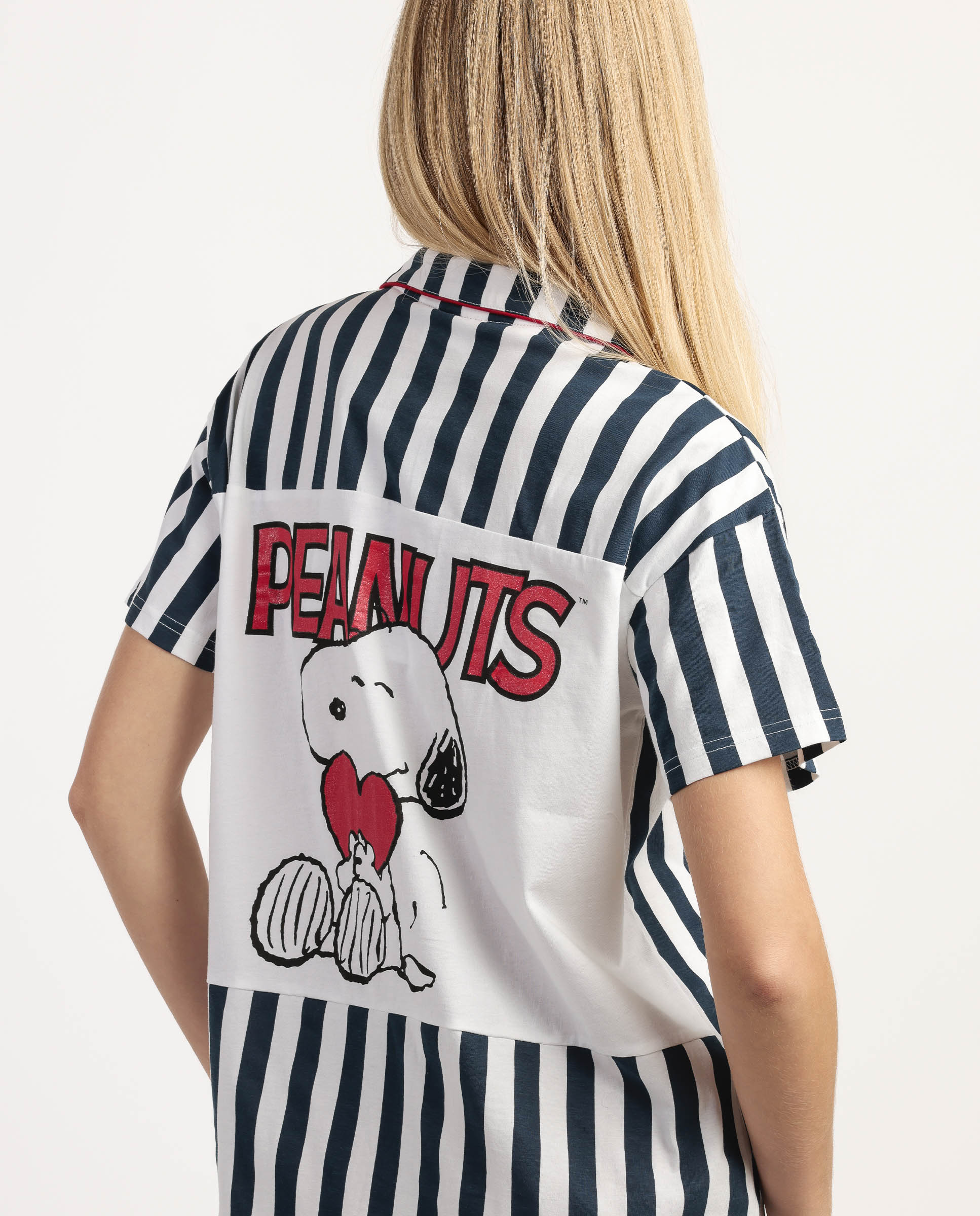 Λευκό με μπλε ρίγες. Με κοντό μανίκι, γιακά και κουμπιά. Τσεπάκι στο στήθος. Στάμπα Snoopy Peanuts στην πλάτη.