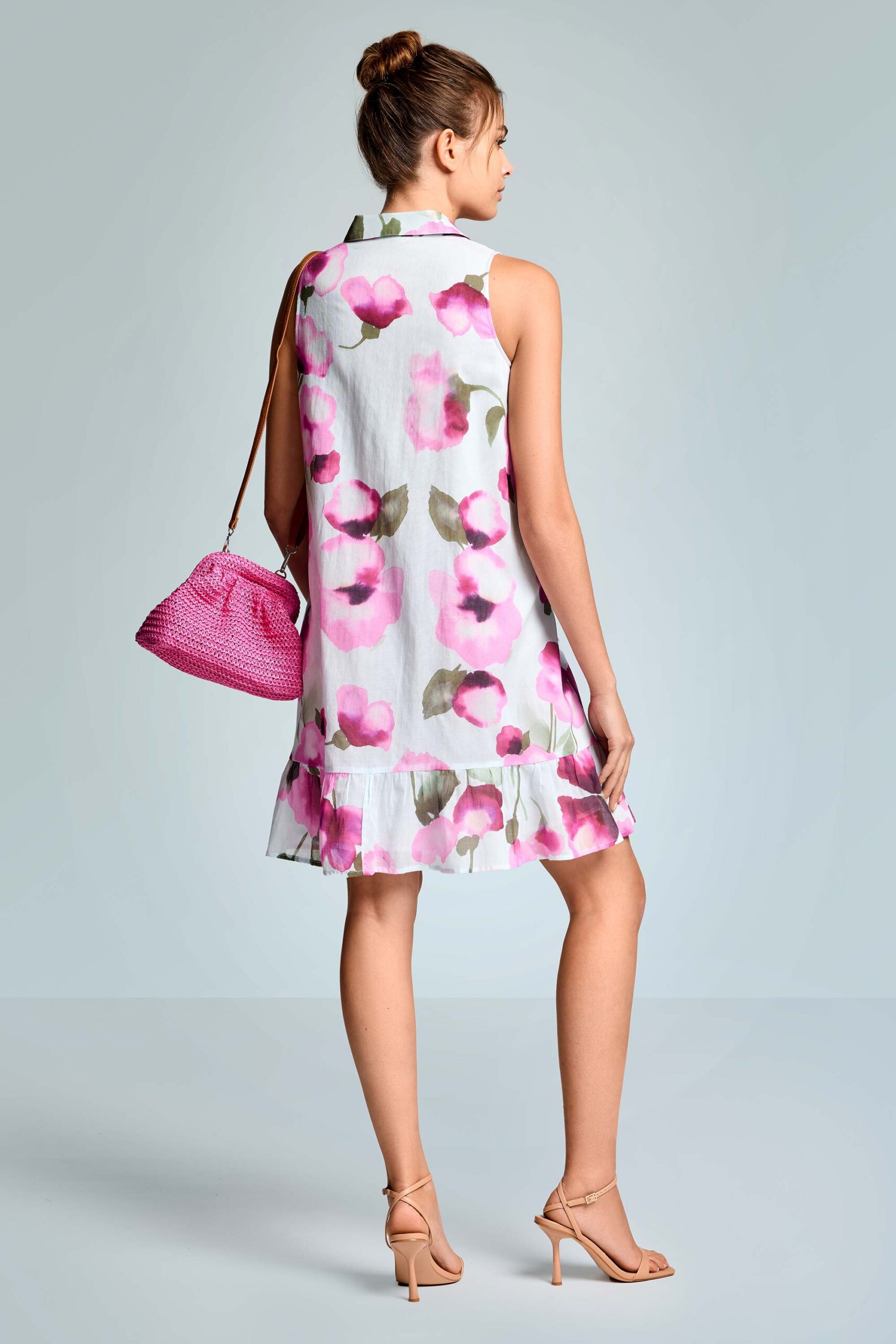 Το αμάνικο φόρεμα Tabita, με φλοράλ στάμπα, είναι ένα κομψό και ευέλικτο καλοκαιρινό ρούχο, ιδανικό για casual μέρες ή κομψές βραδιές. Τελείωμα με βολάν. Γιακάς και κουμπιά μπροστά.
