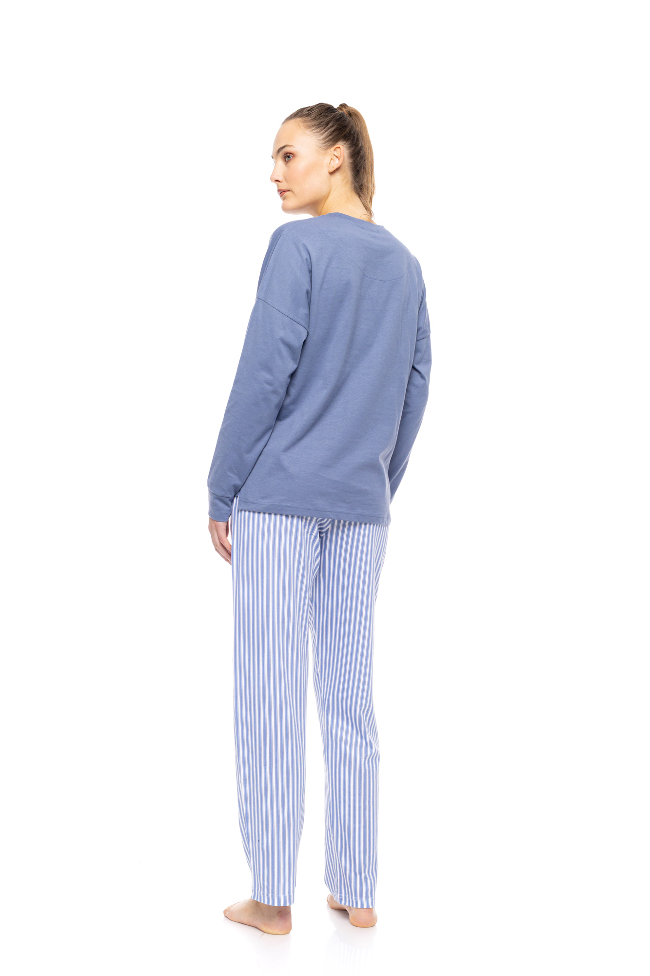 Παντελόνι με μπλε άσπρες ρίγες σε ίσια γραμμή με λάστιχο στην μέση.