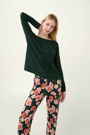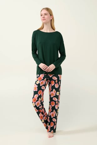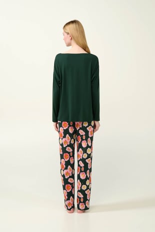 Πυζάμα green floral Vamp. Απολαύστε ένα σετ γυναικείες χειμερινές πυτζάμες που συνδυάζουν άνεση και διακριτική κομψότητα. Είναι κατασκευασμένο από εξαιρετικά απαλό Lenzing tencel και micromodal, που αγκαλιάζει ευχάριστα το σώμα και επιτρέπει στο δέρμα να αναπνέει. Ένα σετ για τις στιγμές χαλάρωσης στο σπίτι.