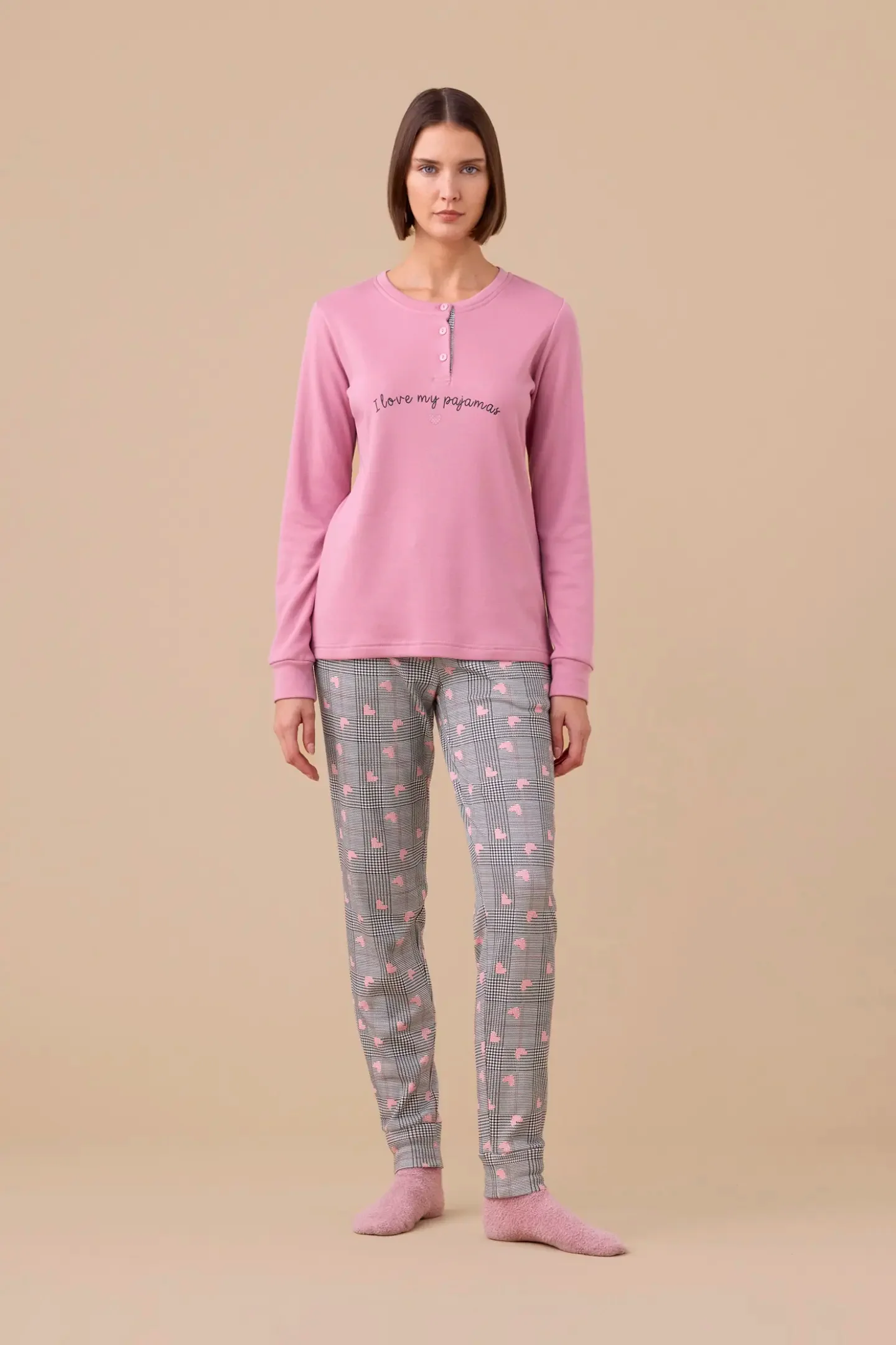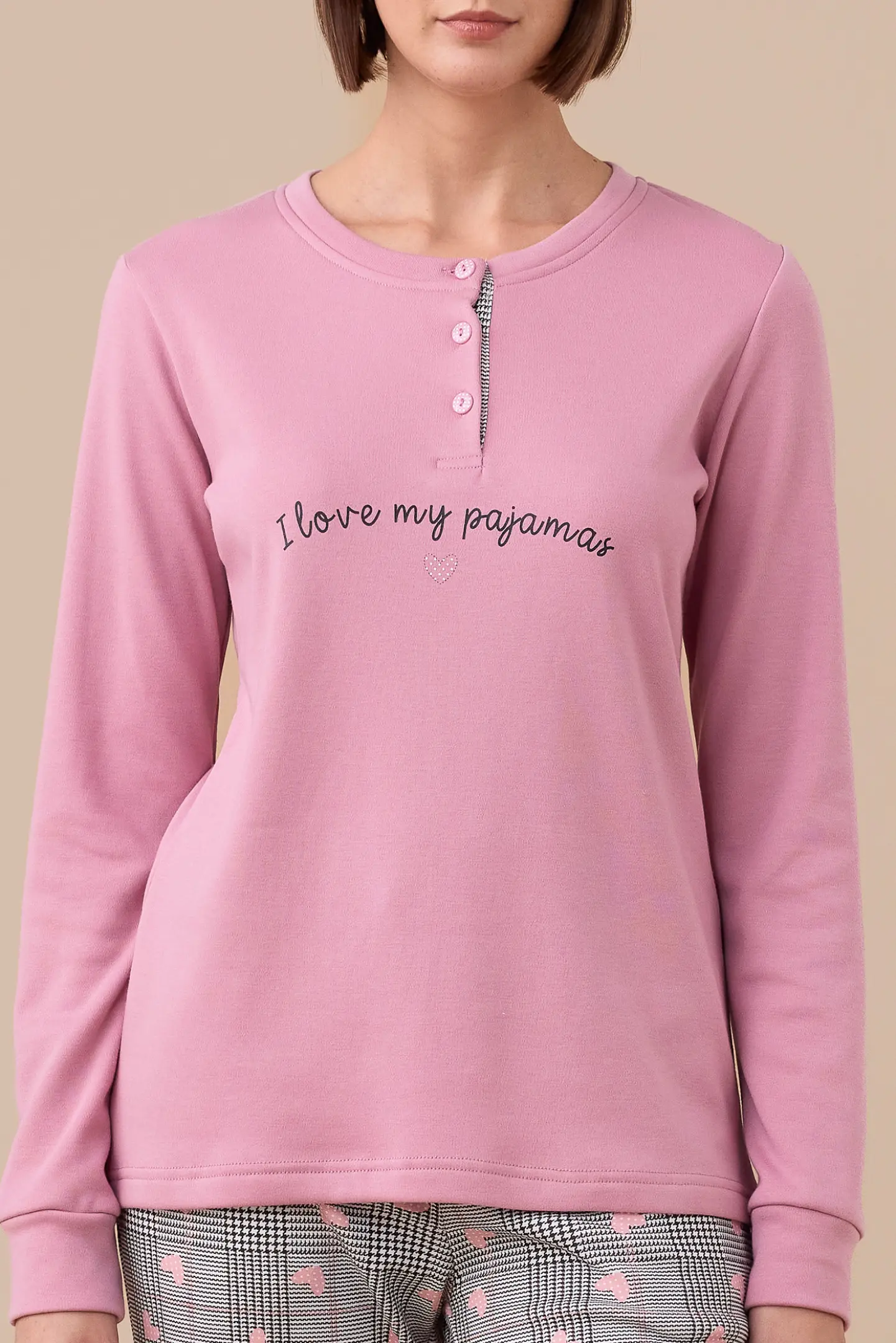 Top dusty pink με στρογγυλή λαιμόκοψη και τυπωμένο σλόγκαν μπροστά I love pajamas.