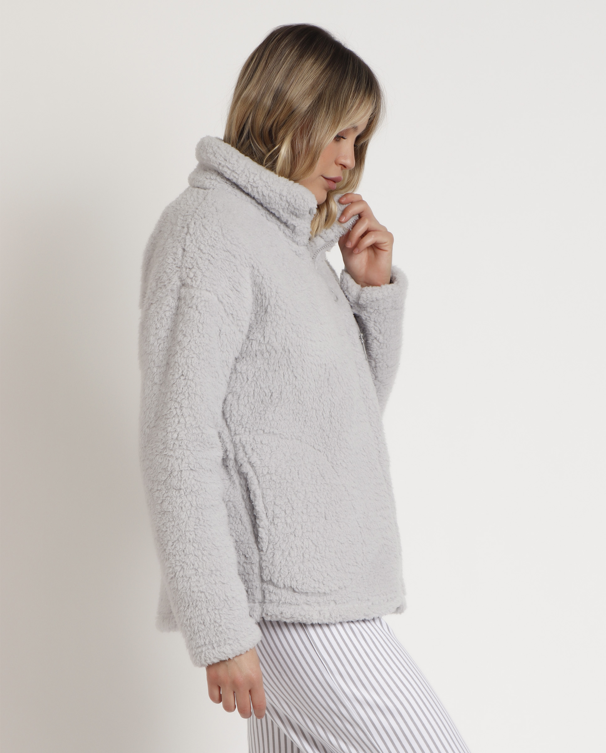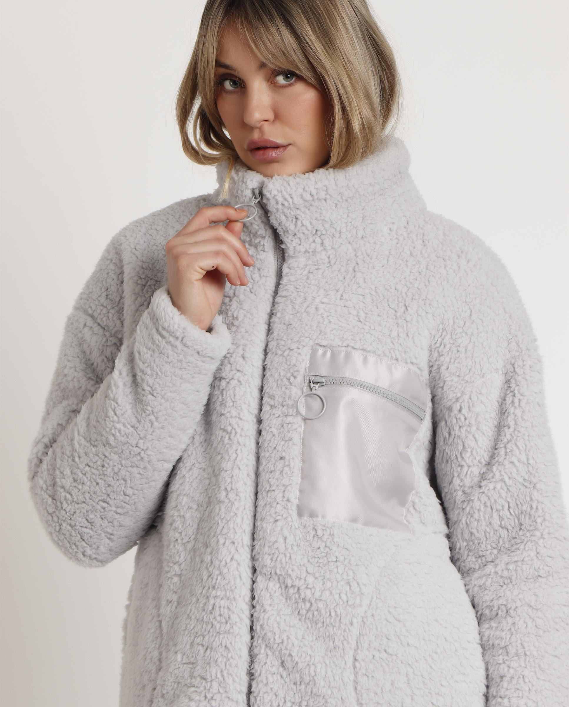 Ρόμπα ζακέτα Perla fleece Admas . Με φερμουάρ, τσέπες και γιακά. Με σατέν τσέπη με φερμουάρ στο στήθος.