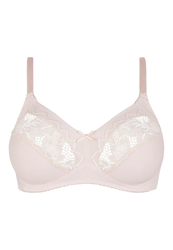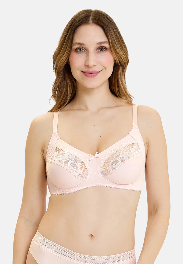 Σουτιέν αμπάνελο rose Cotton d’Arum Sans Complexe. Full cup. Αυτό το σουτιέν “cotton plus” προσφέρει ασύγκριτη άνεση, είναι απαλό στην αφή και ιδιαίτερα ευχάριστο να φοριέται καθημερινά. Η Sans Complexe συνδυάζει για άλλη μια φορά την άνεση και τη θηλυκότητα με αυτή τη διαχρονική σειρά. Απλές βαμβακερές cups με φλοράλ δαντέλα εμβληματική της σειράς ARUM για να αναδείξει το στήθος σας.