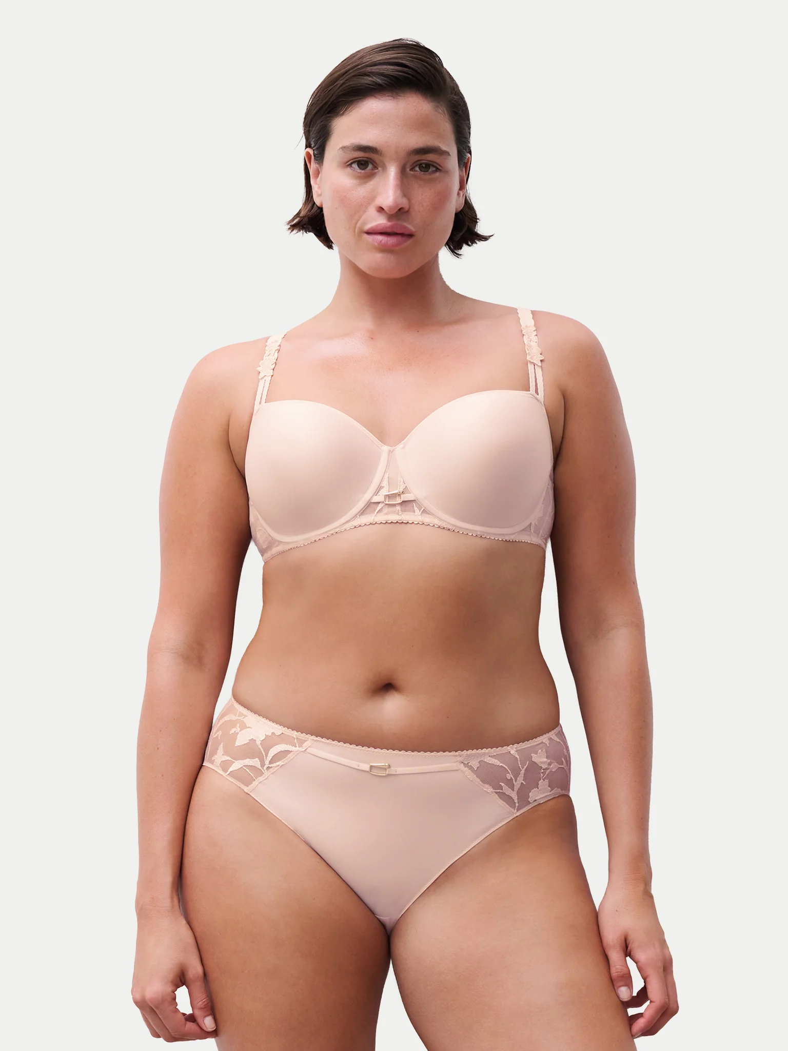 Η Idyll αποκαλύπτει μια μοντέρνα και ντελικάτη κομψότητα, όπου τα φλοράλ κεντήματα και η φινέτσα γίνονται η υπογραφή της καθημερινής χρήσης. Σουτιέν με μπανέλα και επένδυση. Ελαστικές ρυθμιζόμενες τιράντες. Λείες cups και επίπεδο κέντημα με εφέ γυαλάδας στα πλαϊνά. Λεπτομέρειες: Χρυσό κόσμημα στο κέντρο, αλληλεπίδραση αδιαφανούς και διαφανούς υφάσματος στα cups. Κάλυψη στήθους: Πλήρης κάλυψη.