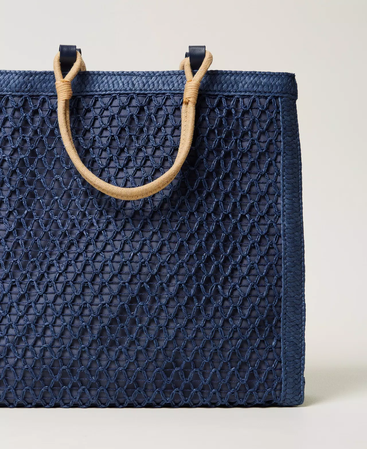Τσάντα Woven straw Twin Set σε μπλε με μπεζ λεπτομέρειες.